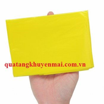Áo mưa dùng một lần với nhiều ưu điểm như thiết kế mô phỏng áo choàng có mũ chui đầu, dày 0.015mm, nhẹ sẽ là một người bạn đồng hành hữu hiệu bảo vệ khách hàng khi trời mưa, qua đó quảng bá cho thương hiệu của bạn hiệu quả