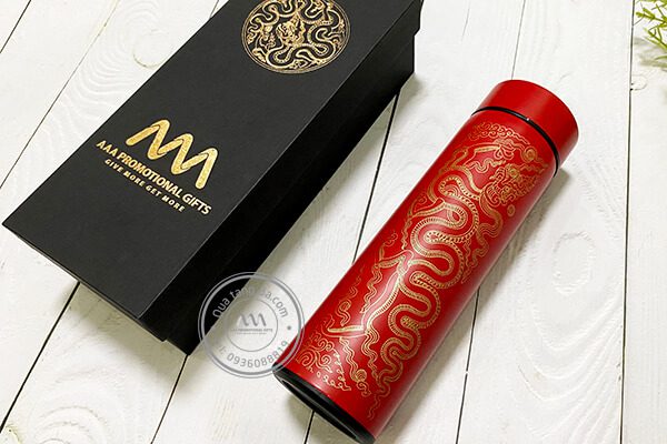 Bình giữ nhiệt hiển thị nhiệt độ Rồng thời Lý thuộc dòng sản phẩm nổi bật với họa tiết Rồng thời Lý được in trên bề mặt, tạo nên sự sang trọng và đẳng cấp, vô cùng thích hợp để tặng các đối tác – khách hàng VIP hoặc cấp quản lý trong các doanh nghiệp.