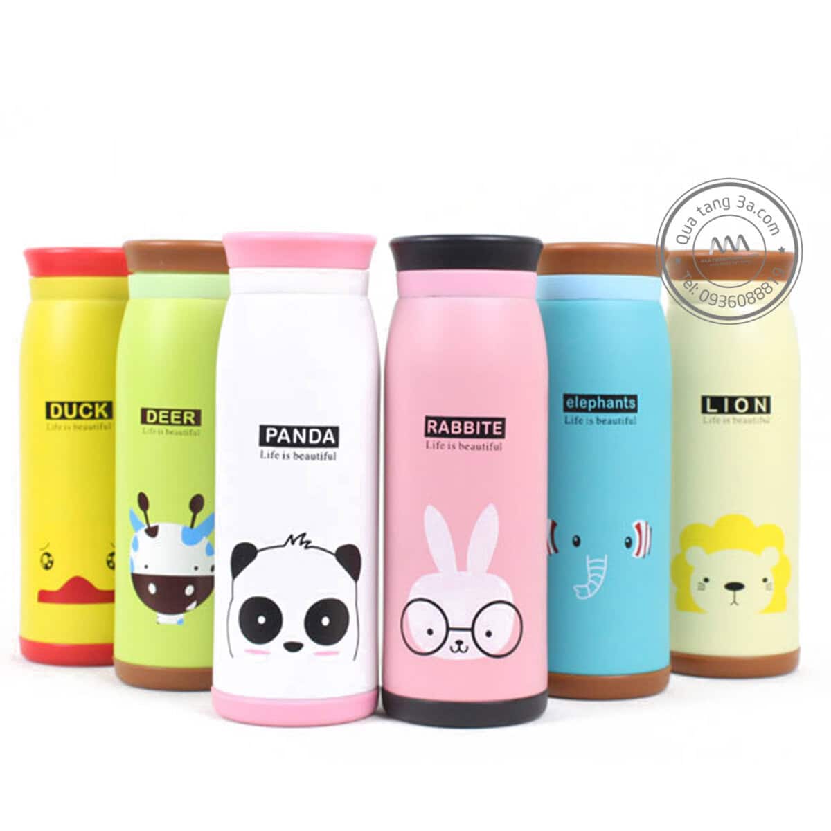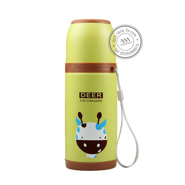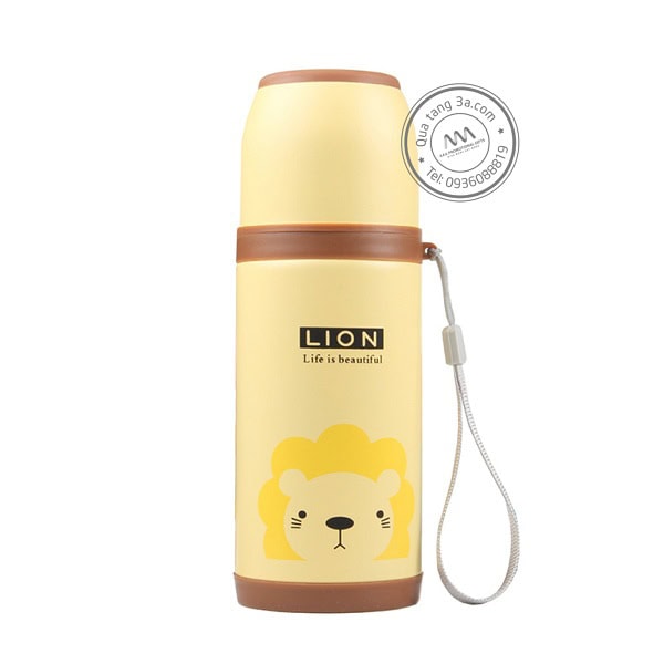 Bình giữ nhiệt hình động vật với màu sắc rực rỡ và thiết kế ngộ nghĩnh với hình các loài động vật quen thuộc trong mọi bộ phim hoạt hình như sư tử, thỏ hồng, gấu trúc, hươu … Gương mặt của các con thú đều rất hiền lành, dễ thương và thân thiện.