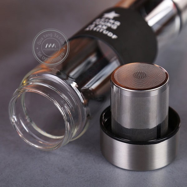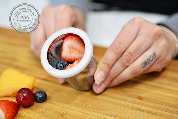 - Thiết kế có thể tháo lắp 2 đầu. Phía đáy bình có thể tháo rời, đưa trà hoặc hoa quả detox vào phần cốc lọc – nơi có rất nhiều lỗ nhỏ giúp bạn hoàn toàn không phải lo việc uống trà lẫn cả những bã trà hoặc hạt hoa quả bên trong nữa, việc thưởng thức đồ uống sẽ trở nên tuyệt vời hơn.