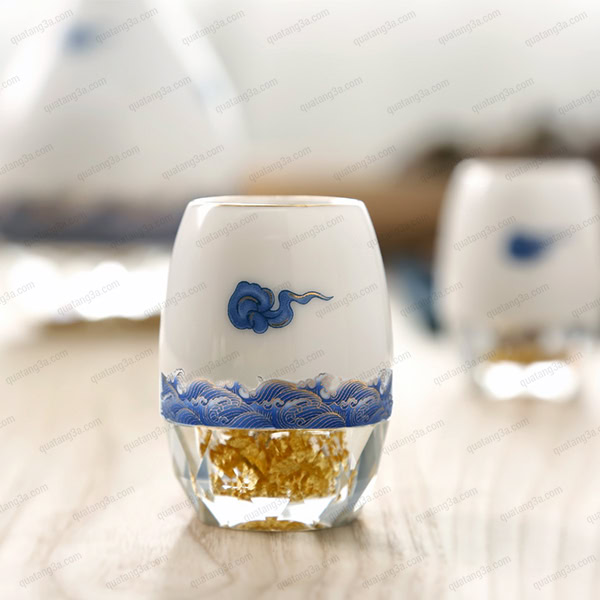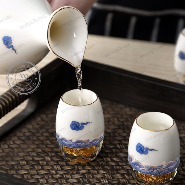 - Họa tiết mây và sóng toát lên sự vô lượng, phóng khoáng và bao la của đất trời, cực kỳ phù hợp với những người yêu nét đẹp cổ điển, truyền thống. Tone màu xanh lam đem lại cảm giác nhẹ nhàng, thư giãn. Lấy cảm hứng từ chính thiên nhiên, bộ bình và cốc rượu mang nét đẹp trong sáng, tươi mới nhưng không kém phần tinh tế, thanh tao.
