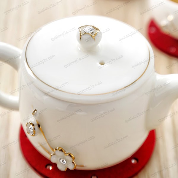 Bộ bình và cốc uống trà 8 món họa tiết hoa mai đính đá Swarovski