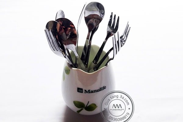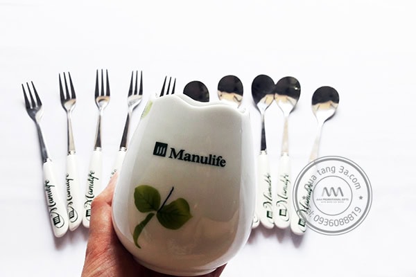 Bộ thìa dĩa ăn hoa quả xinh xắn in logo thương hiệu Manulife độc quyền tại Quà tặng 3A.