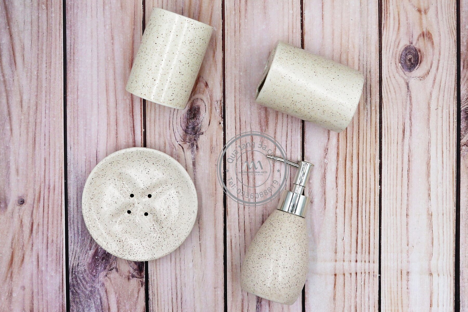 – Số lượng: Gồm nhiều sản phẩm khác nhau như chai đựng bằng sứ, khay đựng, cốc đựng, khay xà bông.