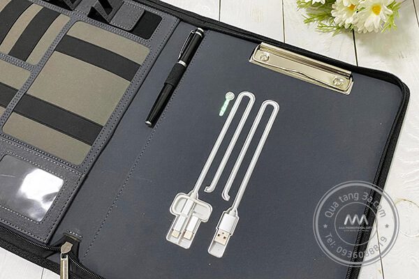 Cặp tài liệu A4 đa năng kèm pin và dây sạc dự phòng
