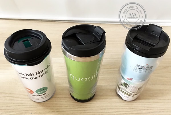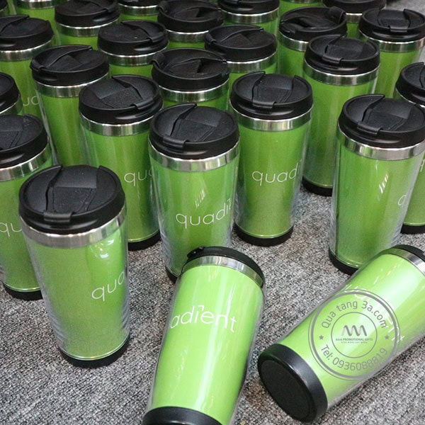 Chiếc cốc này có cấu tạo 2 lớp, gồm một lớp inox bên trong và lớp vỏ nhựa trong suốt bên ngoài. Giữa 2 lớp inox và nhựa này có một lớp giấy in có thể tùy biến thiết kế rất phong phú đa dạng. Dưới đây là hình ảnh thành phẩm 3A đã thực hiện cho Quadient.