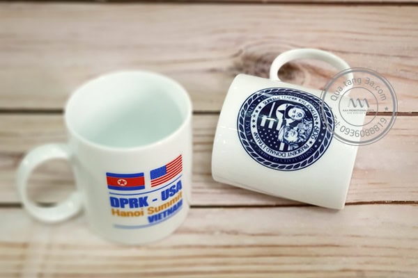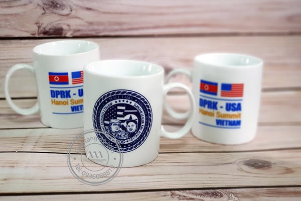 – Cốc sứ in hình 2 ảnh vị lãnh đạo Mỹ – Triều – Giá: 100.000/pcs.