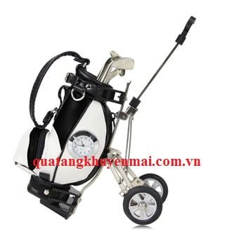 Ống cắm bút hình túi đựng gậy đánh golf kèm đồng hồ sẽ là một món quà lý tưởng cho mọi khách hàng của bạn với nhiều ưu điểm vượt trội như thiết kế hình túi đựng gậy đánh golf dùng để đựng bút, có 3 bút cắm với 3 màu sắc khách nhau, túi gậy đánh golf dạng xe kéo có khớp gập được gọn gàng, thân túi có trang bị đồng hồ kim. Sản phẩm sẽ đáp ứng mọi nhu cầu của khách hàng và đưa thương hiệu của bạn trở nên nổi tiếng trên thị trường