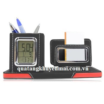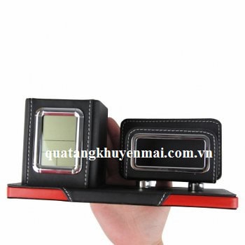 Ống cắm bút và đựng thẻ bằng da gắn đồng hồ sẽ là một món quà tuyệt vời cho khách hàng của bạn với nhiều ưu điểm nổi bật như thiết kế có cống cắm bút và đựng danh thiếp, đồng hồ có chế độ báo thức và chế độ nhắc lại, màn hình hiển thị LCD tự động, thiết bị đếm ngược thời gian, hiển thị cả nhiệt độ môi trường. Sản phẩm sẽ là một phương tiện quảng bá hiệu quả cho thương hiệu của bạn, chìa khóa thành công cho mọi chiến lược marketing.