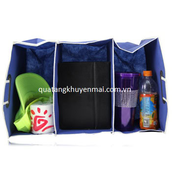 Túi ô tô gấp, một sản phẩm năng động với kích thước 50 x 32 x 32.5cm mang nhiều tính năng nổi bật: 3 ngăn đựng đồ, hai túi lớn hai đầu, hai túi nhỏ hơn bên trong, có thể gập lại dễ dàng và tay cầm khoét lỗ, sẽ đem thương hiệu của bạn tới khách hàng hiệu quả.