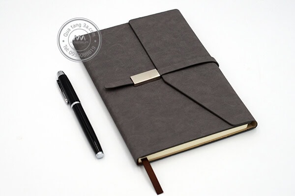 – Sổ viết với chất liệu bìa da simili màu xám thanh lịch kèm khóa sổ gắn nam châm sáng bóng