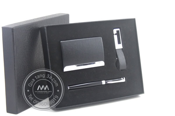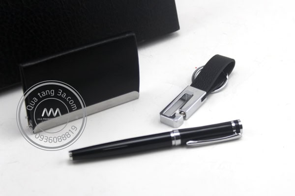 Gift set gồm: Hộp đựng name card, móc khóa và bút bi. Sản phẩm tinh tế, sang trọng, thể hiện đẳng cấp của người sử dụng.
