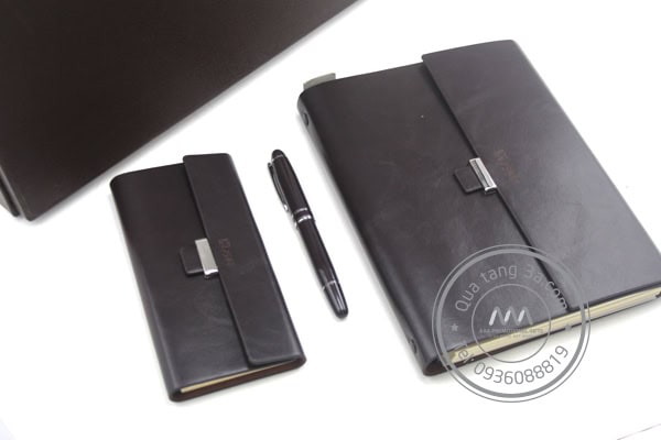 Gift set bao gồm: 2 quyển sổ da cao cấp và 1 bút kim loại xoay mở nắp. sổ da cao cấp, sang trọng.