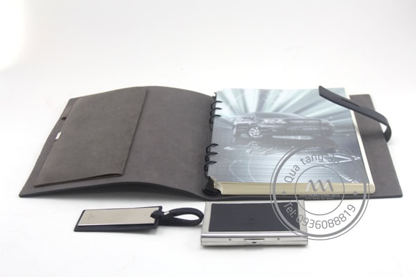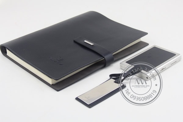 Bộ gift set gồm các sản phẩm: sổ da, móc khóa và hộp đựng name card. Mỗi sản phẩm thể hiện sự tinh tế và đẳng cấp của người chủ sở hữu.