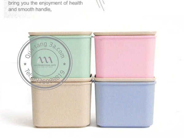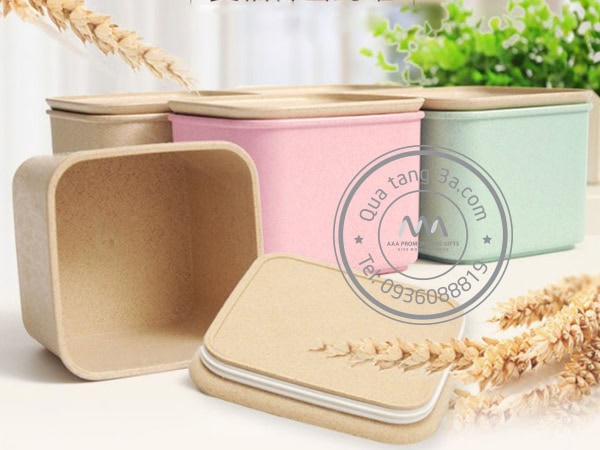 Hộp đựng thực phẩm được làm từ bột lúa mạch, hình vuông có nắp.