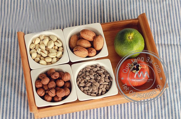 Được làm từ sứ cao cấp, chiếc khay thích hợp đựng bánh, mứt, các loại hạt…trong ngày Tết, đảm bảo vệ sinh an toàn thực phẩm.