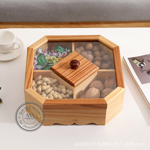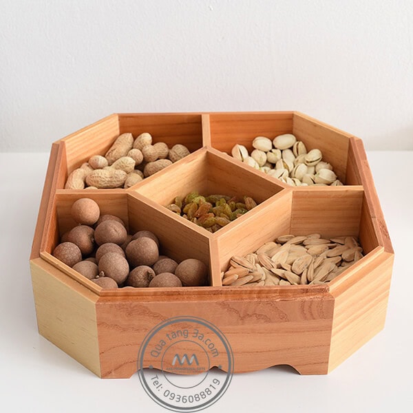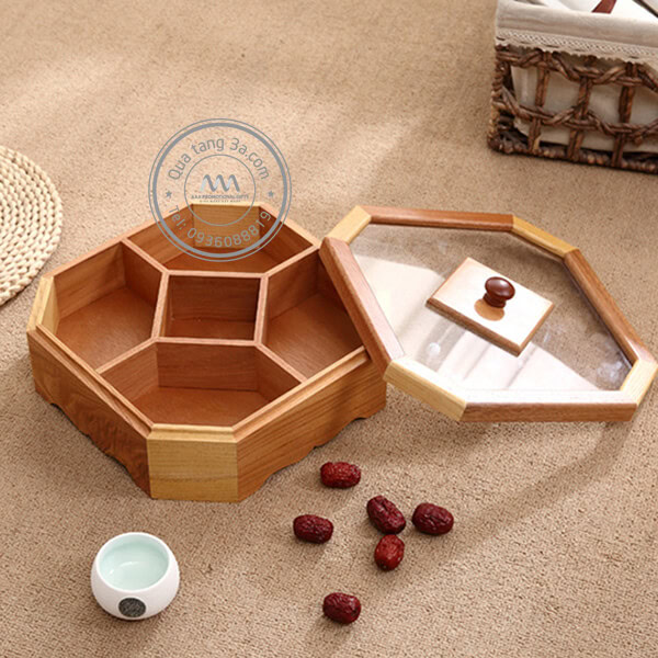 Cứ đến cuối năm thì thị trường quà tết lại trở nên náo nhiệt với hàng ngàn sản phẩm đa dạng từ giá cả đến mẫu mã, chủng loại,… Quà tặng 3A xin trân trọng giới thiệu đến quý khách hàng sản phẩm mới cho dịp tết năm nay chính là Khay mứt gỗ 5 ngăn quà Tết in logo. Với cơ cấu mở nắp thông minh, đang rất được ưa chuộng tính tới thời điểm hiện nay.