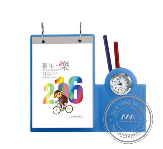 Lịch để bàn đi kèm đồng hồ là món quà thú vị dành cho khách hàng dịp tết.