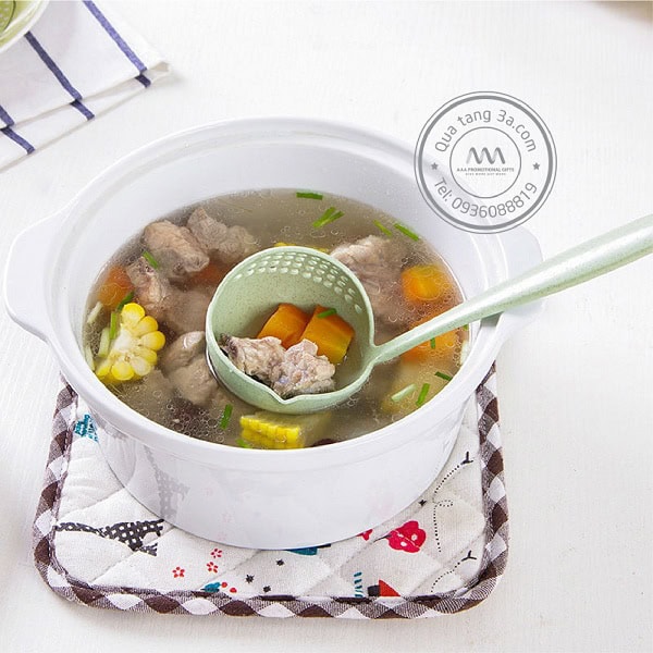– 2 trong 1 độc đáo: vừa có thể múc canh hoặc gạt bớt nước ra khỏi thực phẩm chỉ cần nghiêng nhẹ để đảo chiều.