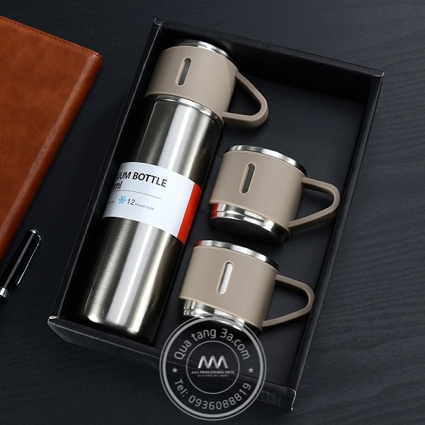 Set bình giữ nhiệt có hai cốc đi kèm là quà tặng khách hàng rất thiết thực và đa năng