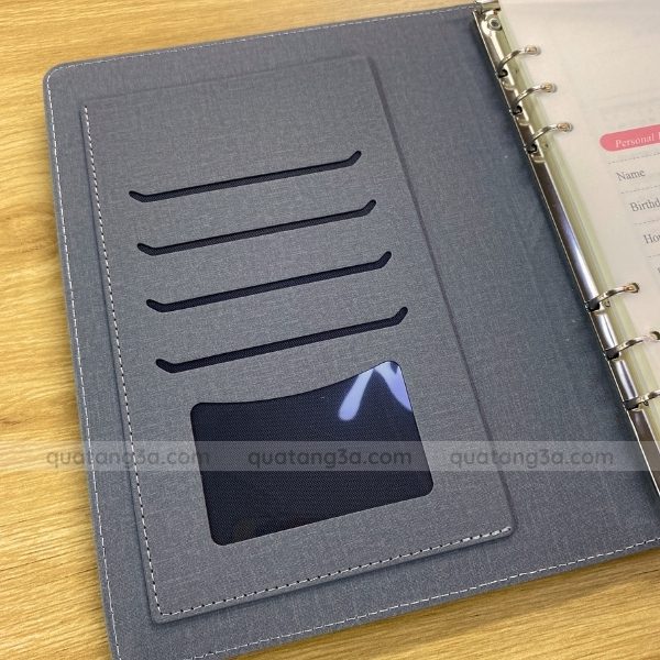 ✅ Bìa trước có các khe để cài tài liệu và namecard.