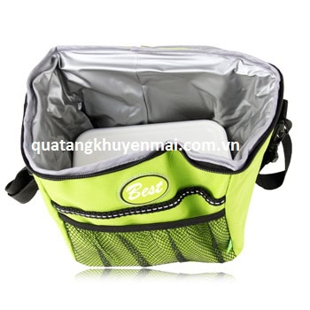 Túi giữ nhiệt vuông có thiết kế đơn giản, tiện lợi với những ưu điểm nổi trội như nắp đậy có khóa kéo, lớp giữ nhiệt bằng lá kim loại, có quai đeo chéo, ngăn cách nhiệt bên trong, túi lưới phía trước và tay cầm. Sản phẩm sẽ làm hài lòng mọi khách hàng và đưa tên tuổi của công ty được quảng bá rộng rãi.