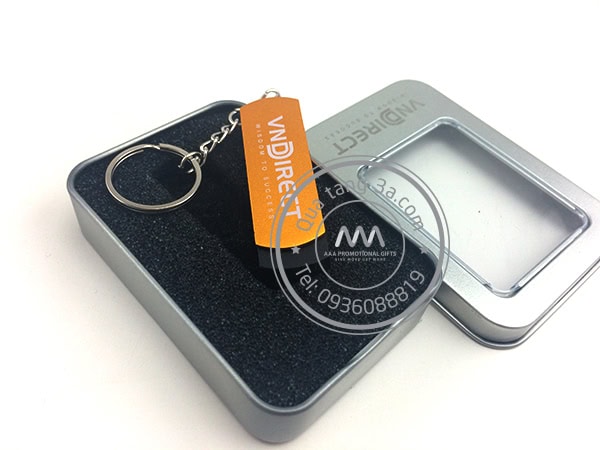 USB kèm móc khóa in logo doanh nghiệp làm quà tặng quảng cáo.