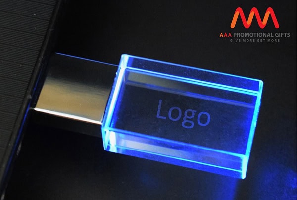 khác với những kiểu USB truyền thống, khối thủy tinh có thể tạo được nhiều hình dáng khác nhau như khối vuông, khối chữ nhật, khối cầu, giọt nước … hay bất cứ loại nào phù hợp với thông điệp sản phẩm mà công ty bạn muốn gửi gắm. Đèn LED với màu sắc rực rỡ sẽ làm cho logo càng thêm nổi bật.