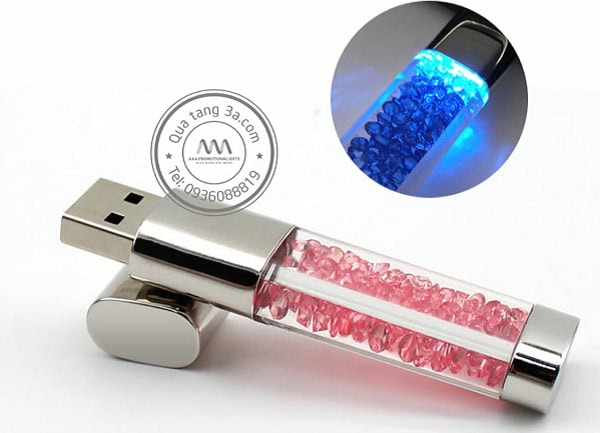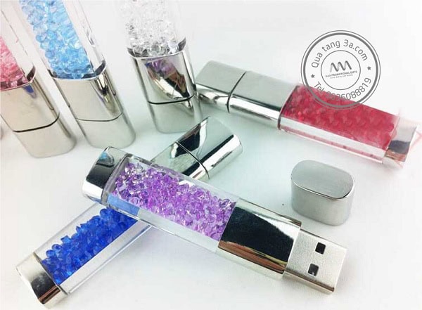 USB quà tặng hình thỏi kim cương là mẫu thiết kế USB mới nhất gây bão. Lí do chúng gây bão là do thiết kế thanh mảnh, gọn nhẹ, với phần thân là một ống nhựa trong suốt chứa các viên đá màu lấp lánh nên được gọi là “thỏi kim cương”. Ưu điểm của dòng sản phẩm này có thể ứng dụng làm quà tặng khách hàng, nhân viên, đối tác của công ty: