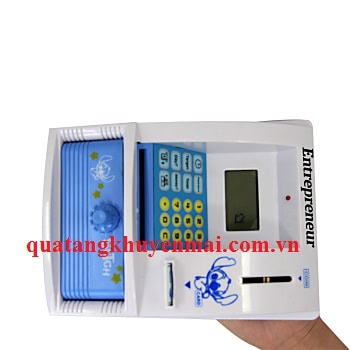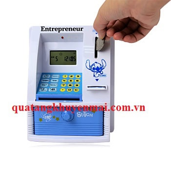Ống đựng tiền ATM biết nói gồm cả màn hình hiển thị ngày tháng và thời gian, có chế độ cài đặt và thay đổi password cho thẻ, nhập số tiền muốn rút, nhạc cài đặt khi gửi tiền, máy biết nói và tự động nhận diện mệnh giá đồng xu, chất liệu không nứt vỡ, không bạc màu và không độc hại, có ngăn kéo đựng xu, khe nhét xu, màn hình hiển thị LCD và đèn tín hiệu sẽ là cơ hội tuyệt vời cho thương hiệu của bạn vươn xa trên thị trường.