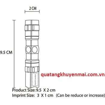.Được làm từ nhôm và các hợp kim tốt nhất, chiếc đèn pin nhỏ gọn này sẽ là người bạn không thể thiếu khi bạn đi trong bóng tối, với nhiều tính năng vượt trội như kích thước gọn gàng, vừa tay, tiện lợi, dễ sử dụng và có thể sử dụng cho nhiều mục đích khác nhau, đây chắc chắn sẽ là sản phẩm không thể thiếu cho mỗi khách hàng, và một phương tiện hiệu quả quảng bá thương hiệu của bạn.